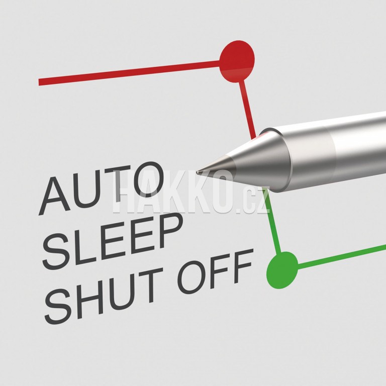 Funkce automatického spánku nebo vypnutí využívají zabudovaný senzor uvnitř hrotu, proto není nutné propojení stanice a držáku na pájecí ručku. Rozložte si libovolně pracovní prostor.