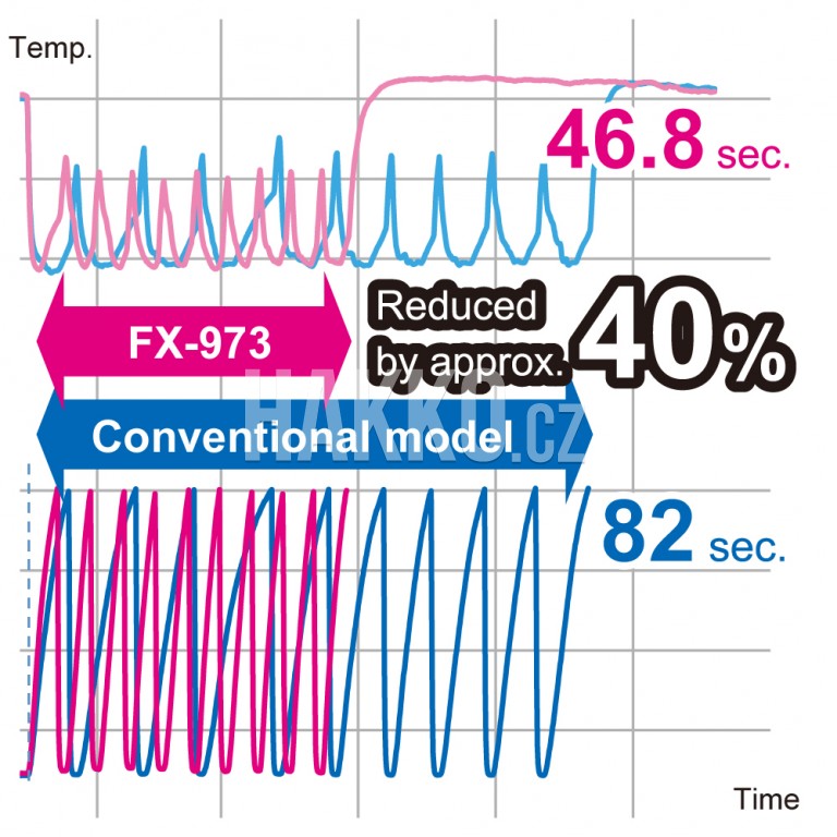 Díky vylepšené citlivosti senzoru a designu, který plynule přenáší teplo z topného tělesa na hrot, zůstává teplota hrotu stabilní, což zajišťuje lepší pájení.