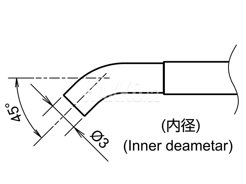 Odpájecí tryska řady NA01 určená pro horkovzdušnou stanici HAKKO FR-850 a odpájecí ručku FR-8501. Zahnutá, vnitřní průměr 3,0 mm.