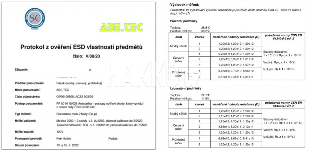 - Teoretické a praktické seznámení se způsoby kontroly požadavků na ochranu součástek proti elektrostatickému výboji.