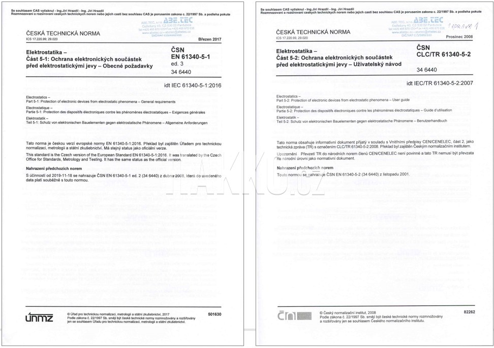 - Rozbor novinek, změn v normě ČSN EN 6134 s požadavky na ochranu součástek proti elektrostatickému výboji.